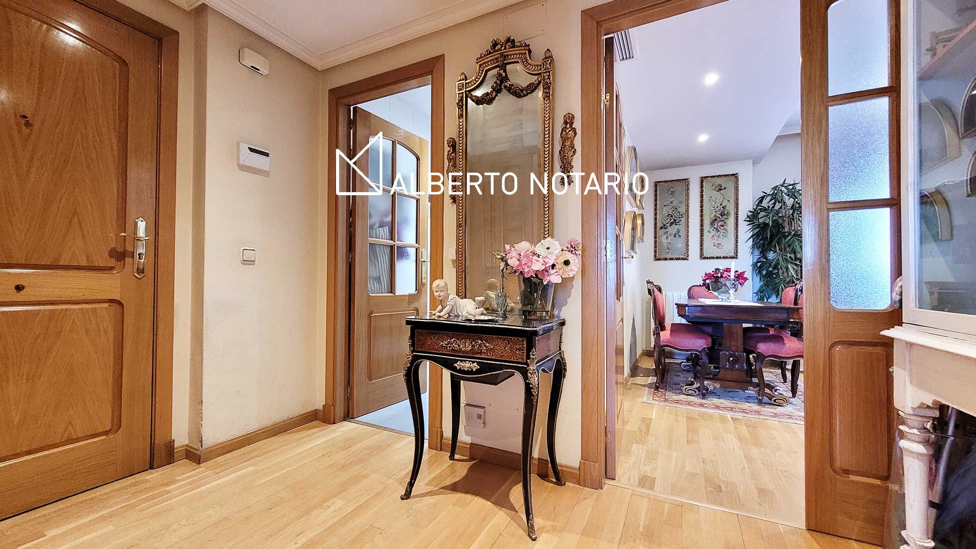 El inmueble destaca por su magnífico salón-comedor en dos ambientes, bañado por luz natural gracias a sus amplios ventanales. Los suelos de madera noble y el cuidado diseño de sus molduras aportan una calidez única. La cocina, totalmente equipada y funcional, incluye una práctica zona de lavadero.